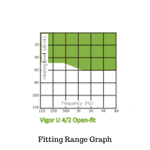 The Vigor U Open-Fit BTE hearing aid has a customized fitting and can be linked to an app and 2.4Ghz wireless technology that allows the user to control the hearing aid their smart phone and smart devices.
